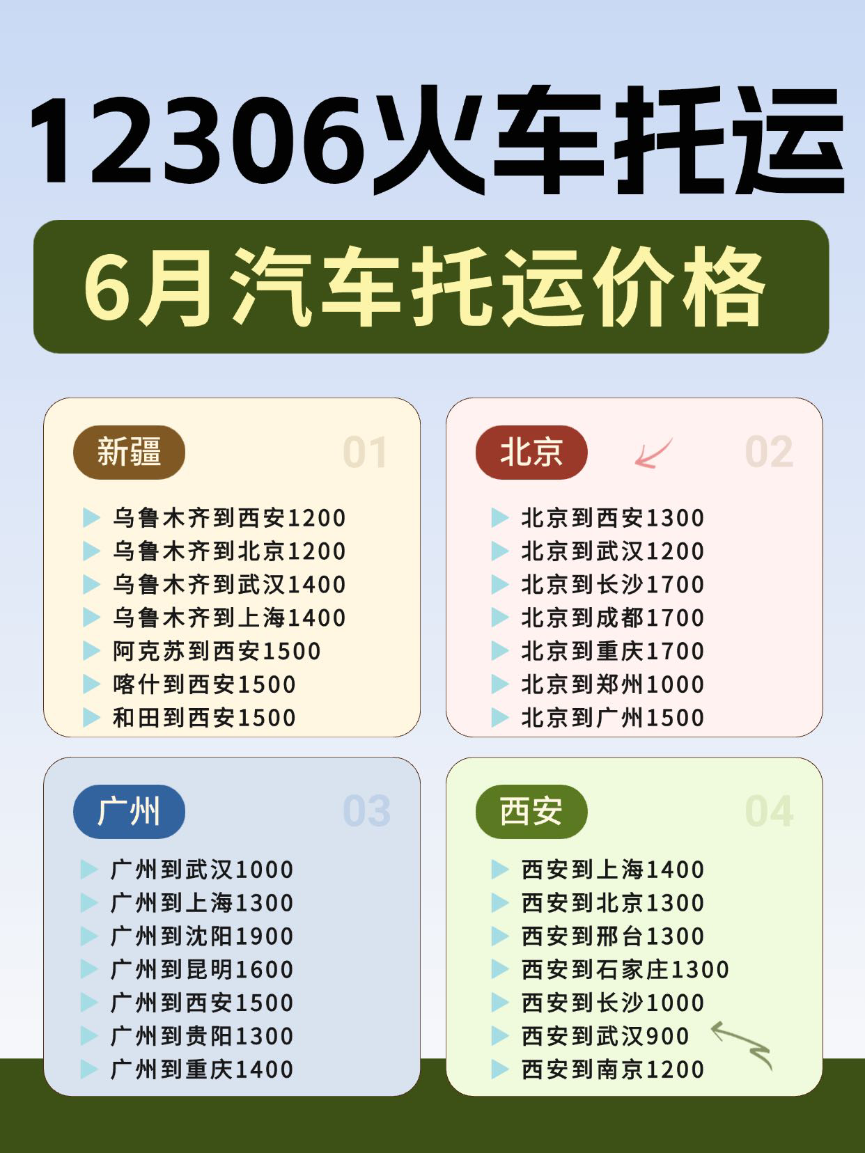 6月汽车托运旺季,12306火车托运以实惠的价格、透明的收费、周到的服务,为您的出行和车辆运输保驾护航。无论您是自驾游爱好者、商务人士还是异地购车者,都能在这里找到最适合您的汽车托运方案。立即关注我们的公众号,获取更多实时报价和优惠信息,让您的汽车托运之旅更加轻松愉快!