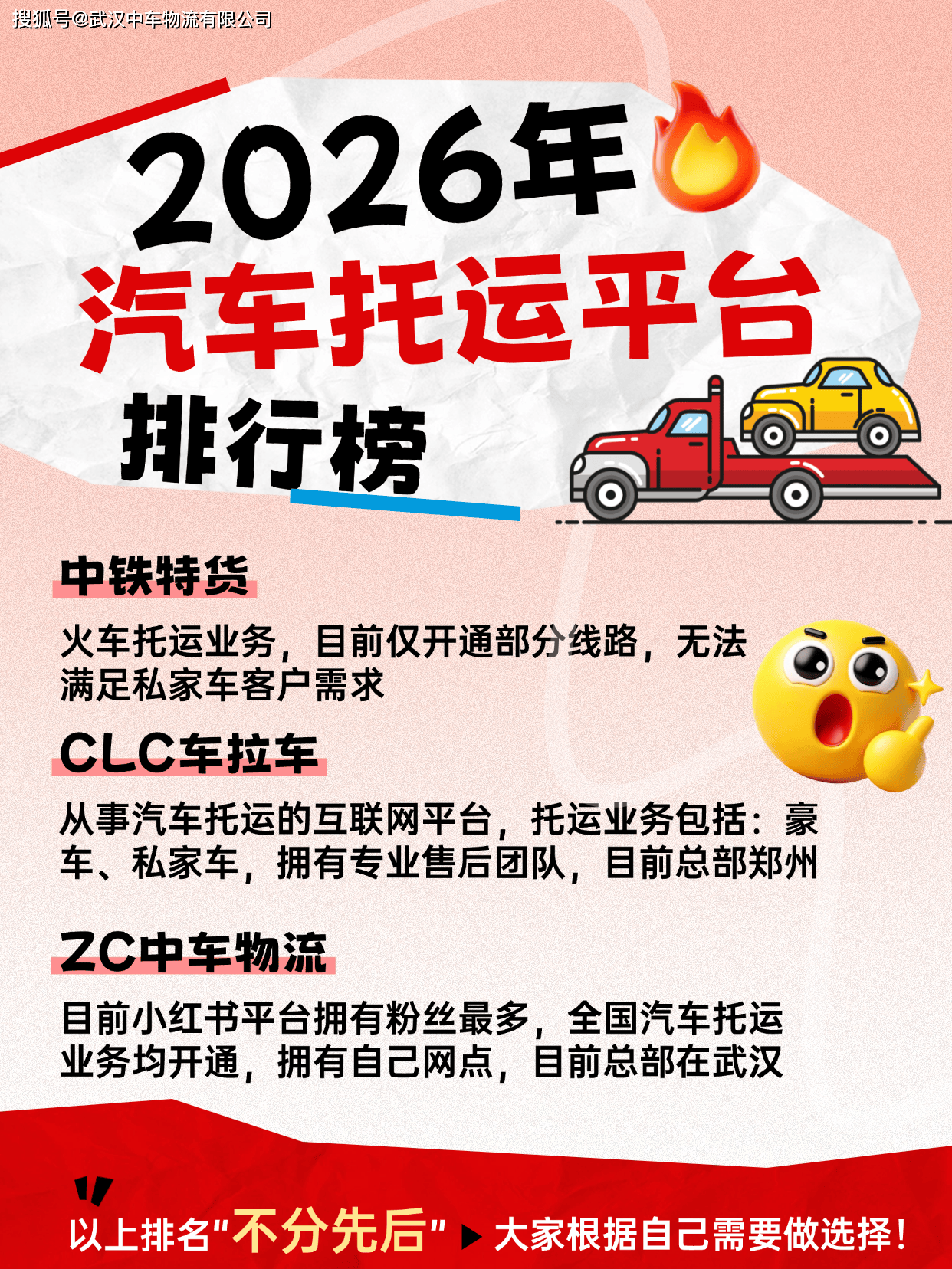 1. 优先选有实体网点和专业售后的平台:有实体网点的品牌,资质更有保障,避免遇到皮包公司;专业售后团队能快速处理运输中的问题,减少维权麻烦,这也是中铁特货、中车物流、CLC车拉车的核心优势之一。