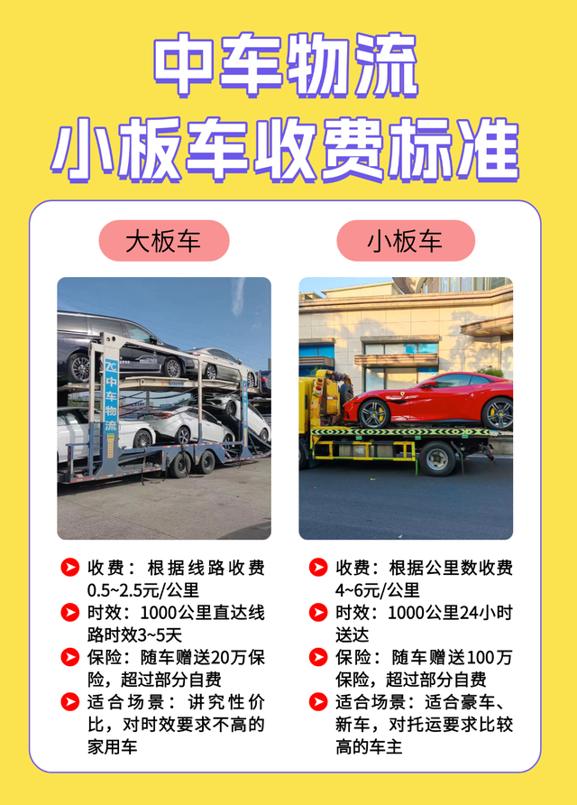 首先跟大家说清楚,小板托运可是汽车托运里的VIP级服务,和咱们平时说的大板拼车完全不一样,主打一个专属、高效、安心,特别适合对托运服务有高要求、不介意价格的车主,尤其是新车、豪车车主,选小板准没错。